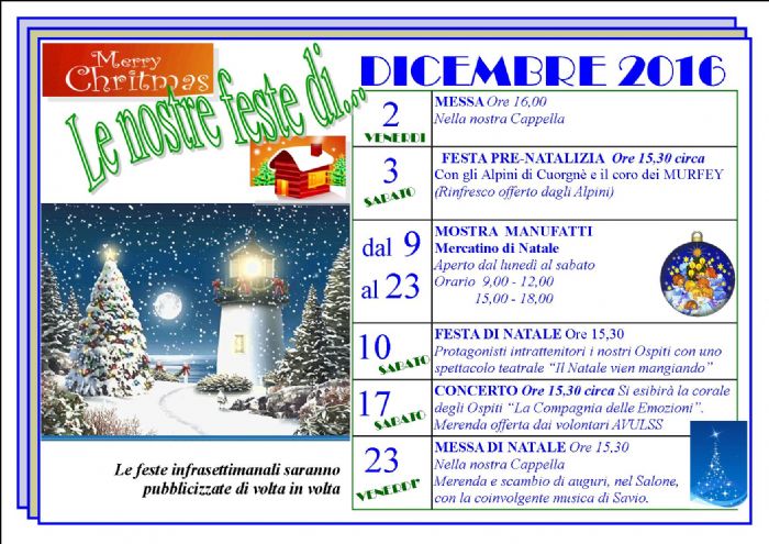APPUNTAMENTI E FESTE MESE DI DICEMBRE 2016